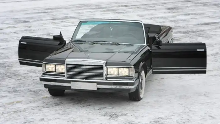 И еще один уникальный кадр: вы никогда не увидите по телевизору кабриолет ЗИЛ-41041 АМГ с поднятым верхом. Не положено! Но при необходимости поднять его оказывается можно. Процесс автоматизирован и занимает около 20 сек.