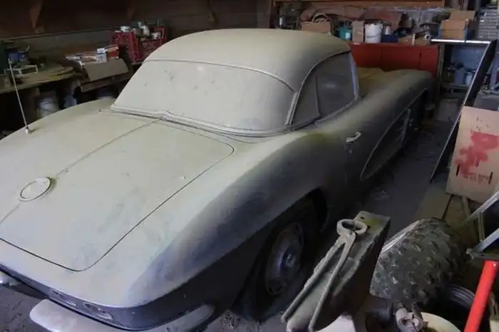 В США выставили на продажу раритетный спорткар Chevrolet Corvette С1 1961 года, простоявший в гараже долгих 44 года. Автомобиль с пробегом более 93 тысяч миль обнаружили в штате Невада, и теперь его продают истинному ценителю, который готов будет за него заплатить 36 700 долларов. За годы простоя машина потеряла вид и покрылась большим слоем пыли, но, несмотря на это, она пригодна для реставрации, после которой будет выглядеть так, как в момент своего схода с конвейера.