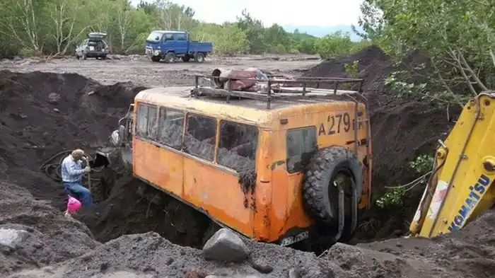 Лето на Камчатке вовсе не такая беззаботная пора, как может показаться на первый взгляд, и особенно это касается автомобилистов. Здесь всегда необходимо быть начеку, а наличие автомобиля повышенной проходимости вовсе не гарантирует вам то, что вы сможете проехать везде, где захотите. Ярким тому примером является вот этот грузовик ЗИЛ-131, который попал под дождь, а потом сел в сель.