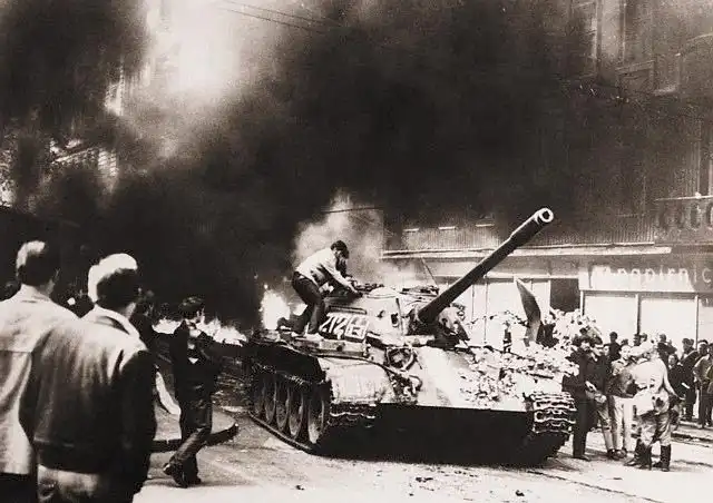 В 1956 году в Венгрии пятьдесятчетверкам пришлось повоевать со своим «дедушкой» – Т-34/85. В Будапеште повстанцы захватили пять «тридцатьчетверок» Венгерской народной армии, которые затем принимали участие в боях с советскими частями. 2-я гв. МД (гвардейская механизированная дивизия) из состава Особого корпуса советских войск на территории Венгрии, которая 24 октября первой вступила в восставший Будапешт потеряла в этот день 4 танка.