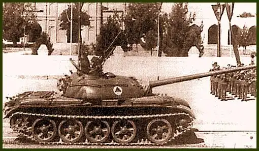 Танк Т-54 (обр.1951 г.) армии Демократической Республики Афганистан на параде в конце 1970-х годов. Эта машина