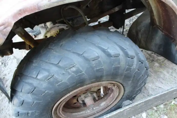 Морда на козелках, а одно колесо скинуто.