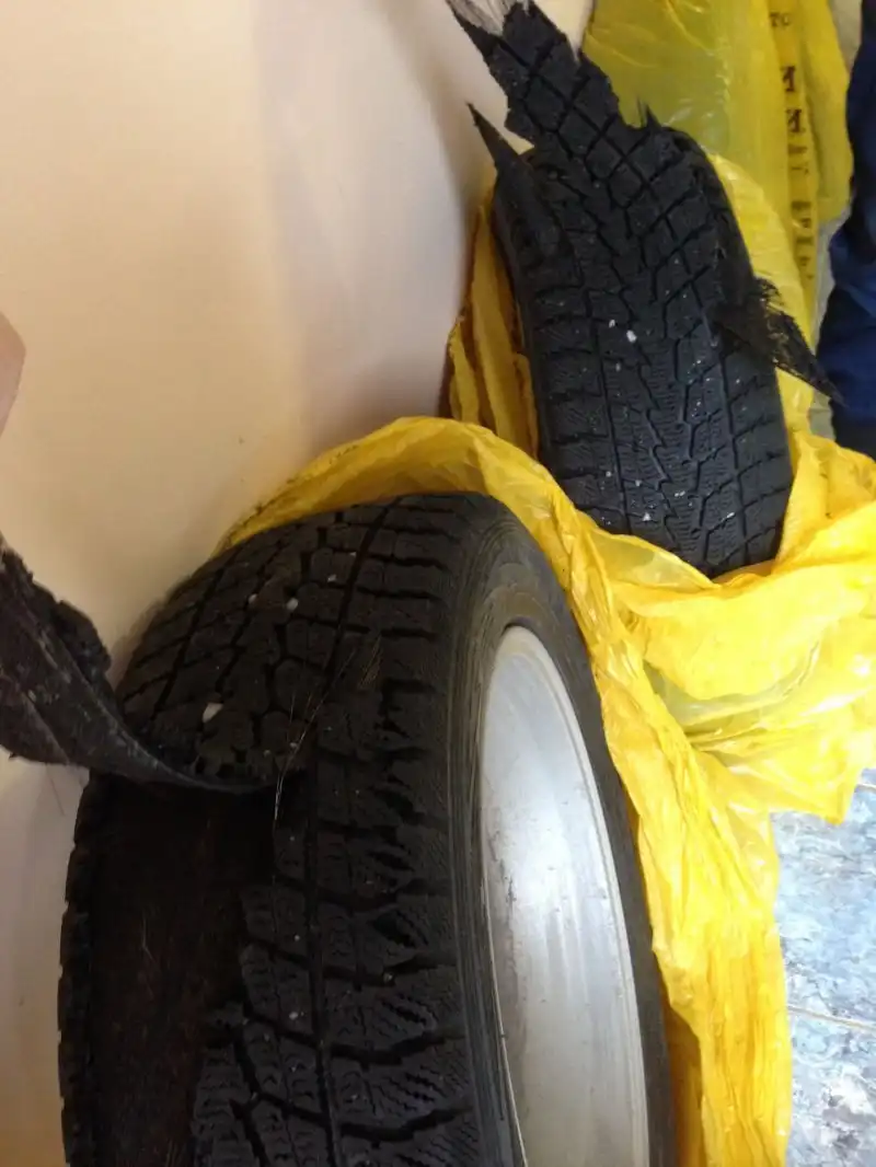 Вот результат покупки б/у резины из Японии. Автовладелец уже откатал на ней прошлую зиму, а сегодня достал чтобы поставить после летнего сезона и увидел вот такую картину... Верхний слой резины с кордом разорвало и виден клей. Не стоит экономить на своей безопасности!
