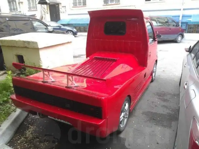 Один из таких умельцев переделал свой мини-грузовичок Daewoo в нечто "Ferrari-подобное". Особенно эффектно получился вид сзади. Сразу видно, что этот "авто-метис" создавался по мотивам Ferari Testarossa.