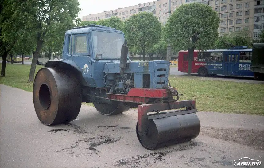 Еще одна экзотическая профессия сельскохозяйственного трактора после доработки - дорожный каток. Колеса заменяются металлическими вальцами - готов нехитрый укатчик. Трансмиссия базового трактора позволяет двигаться очень медленно как вперед, так и назад, что и необходимо катку.