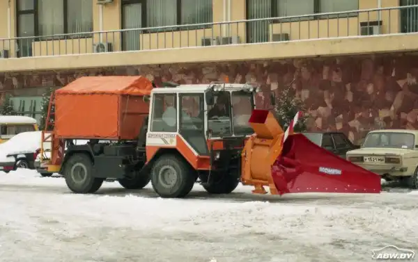 Со временем появилась сугубо дорожная версия "шасси универсального" на колесах одинаковой размерности. Такой вариант приглянулся дорожникам, которые ставят на него много вариантов своей "спецнавески". На этом фото - вариант с роторным снегоочистителем и распределителем противогололедных реагентов.