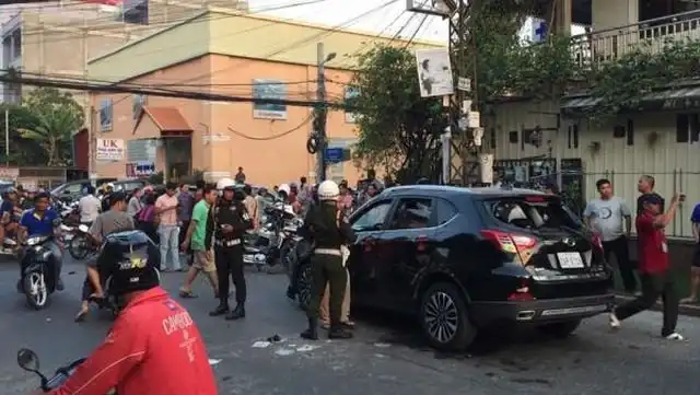 В Камбоджи профессор местного университета совершил ДТП и попытался скрыться с места происшествия. В аварии пострадал водитель мопеда, а пытаясь избежать наказания, автомобилист задел еще несколько машин. Толпа окружила авто виновника аварии и учинила над ним самсуд еще до прибытия полиции, закидав машину камнями.