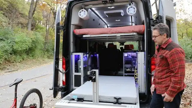 Может сложиться впечатление, что VanDoIt не способен обеспечить достаточный уровень комфорта. На самом деле это совсем не так. Здесь есть двуспальная кровать, может быть установлена портативная кухня, а также туалет и душ. Можно сказать – домашний комфорт.