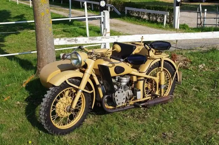 Детище Киевского мотоциклетного завода, который был основан в 1945 году. Первой моделью предприятия стал К-1Б «Киевлянин». На фотографии запечатлена достаточно популярная модель – «Днепр» М-72 от 1957 года производства.