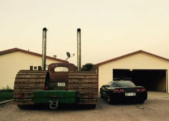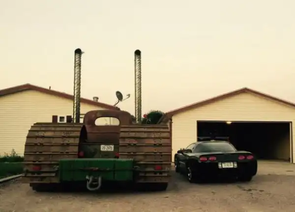 Это не простой шоу-кар, а вполне реальный драгстер Verzani Farms Rat Rod, построенный компанией из американского штата Небраска на базе ретро грузовика. Трехколесный автомобиль оснащен мощным дизельным двигателем, обеспечивающем ему достойную динамику. Однако эта машина чаще всего посещает различные автовыставки, где пользуется особым успехом.