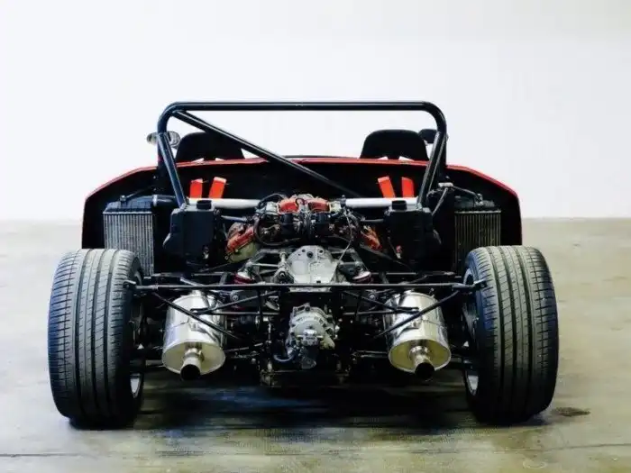 Автомобиль оснащался 2,0-литровым V6 с двумя нагнетателями. Давал он 320 лошадиных сил. Вес аппарата составлял 775 кг.