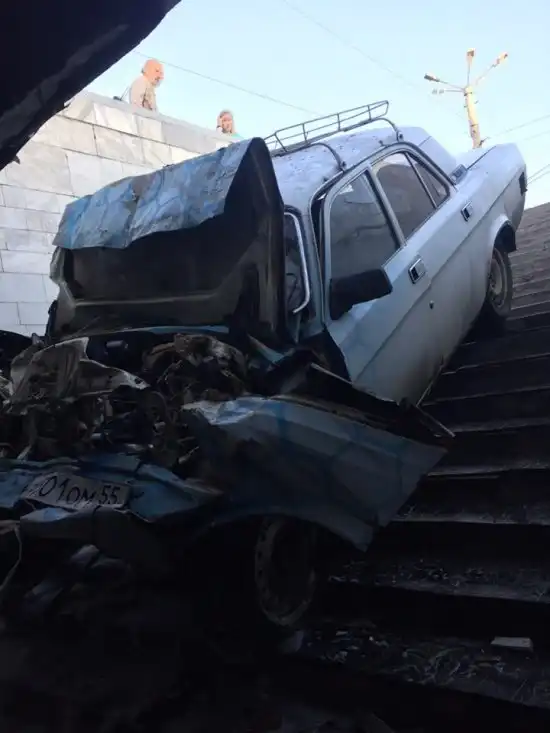В Омске в подземный переход у цирка на полной скорости влетела "Волга". По свежей информации, водитель автомобиля всю ночь таксовал и под утро просто уснул за рулем. К счастью, на момент аварии в подземном переходе никого не было, а 32-летний водитель отделался испугом и не получил серьезных травм, чего не скажешь о его "Волге". Машина не подлежит восстановлению, а специалисты учреждения "Эксплуатация объектов внешнего благоустройства" пока не оценили нанесенный городу ущерб.