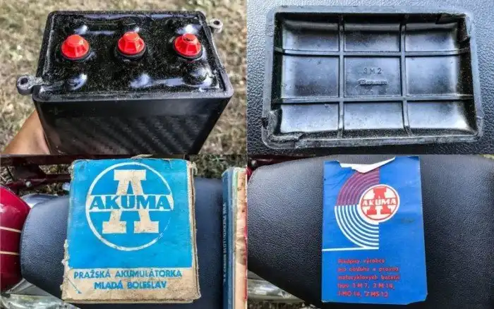Но больше всего меня впечатлил абсолютно новый, в родной картонной упаковке, сухозаряженный 6-вольтовый аккумулятор производства предприятия Pražská Akumulátorka: нужно только залить свежий электролит и он начнет работать!