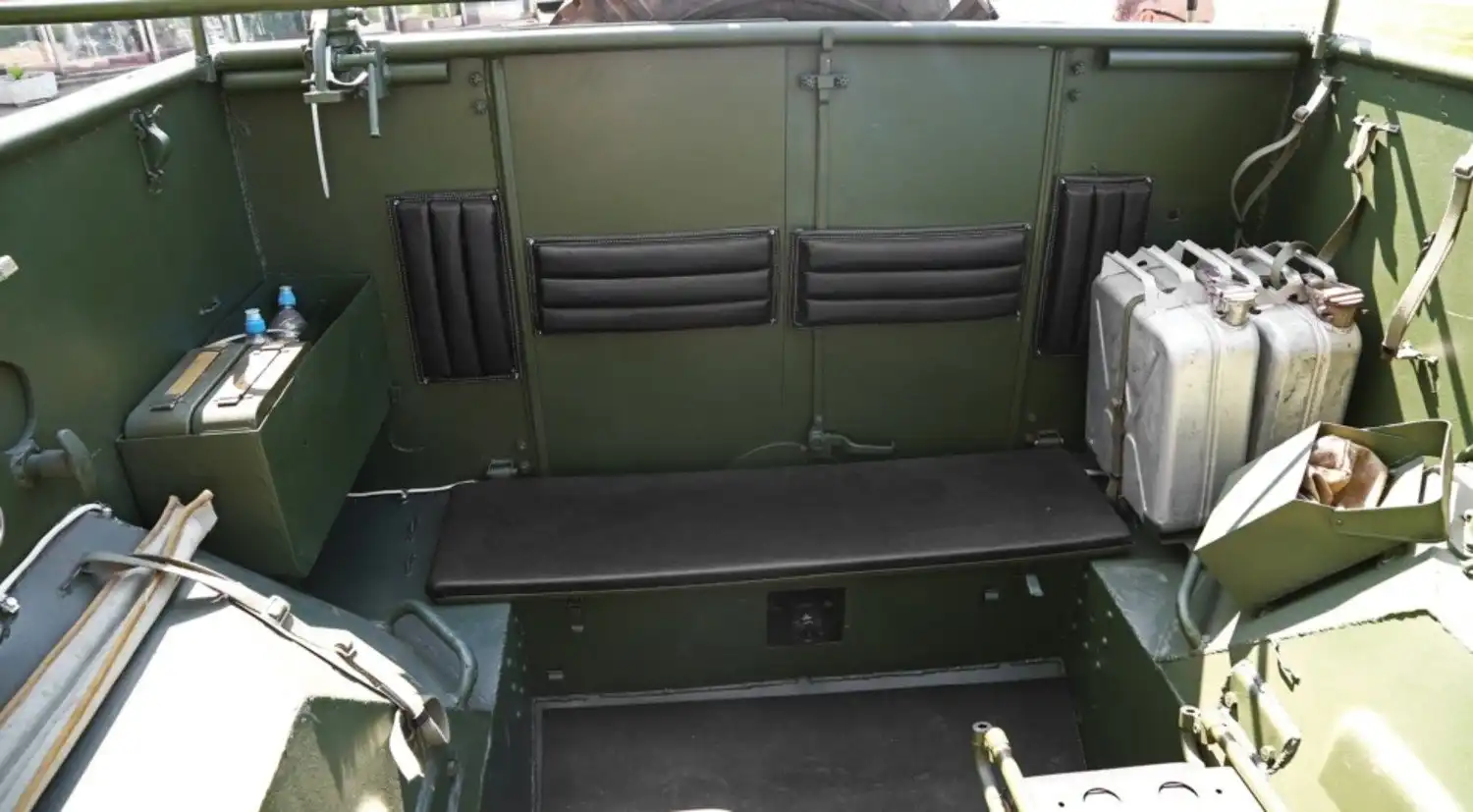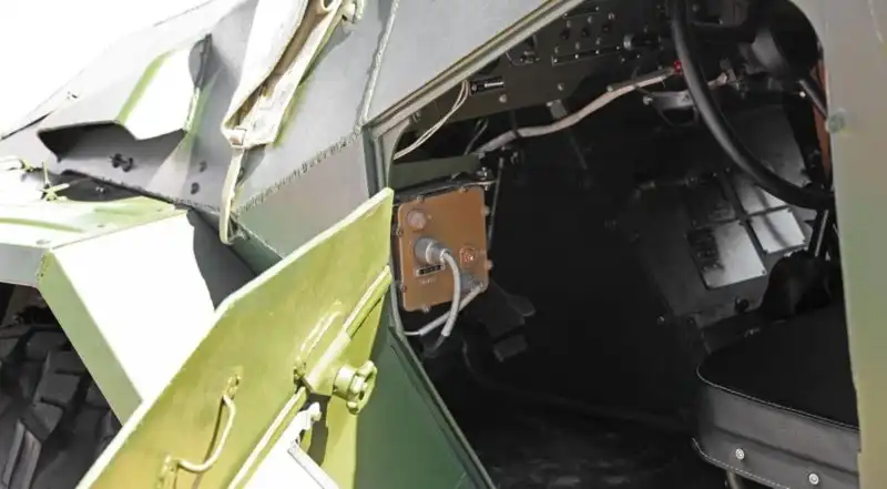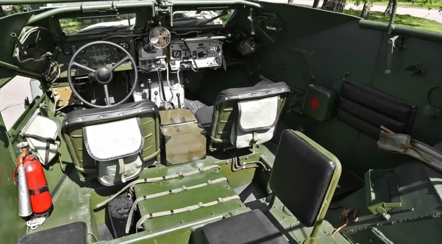 Чтобы пробраться в салон, нужны навыки эквилибриста: узкая бронедверь открывается под острым углом, прикрывая седоков от возможного обстрела. Чтобы забраться внутрь, нужно влезть в неудобный лаз, ужом ввертываясь за гигантскую «баранку» рулевого колеса. Впрочем, при наличии навыка посадка на обитую кожзамом табуретку – процедура не самая сложная.