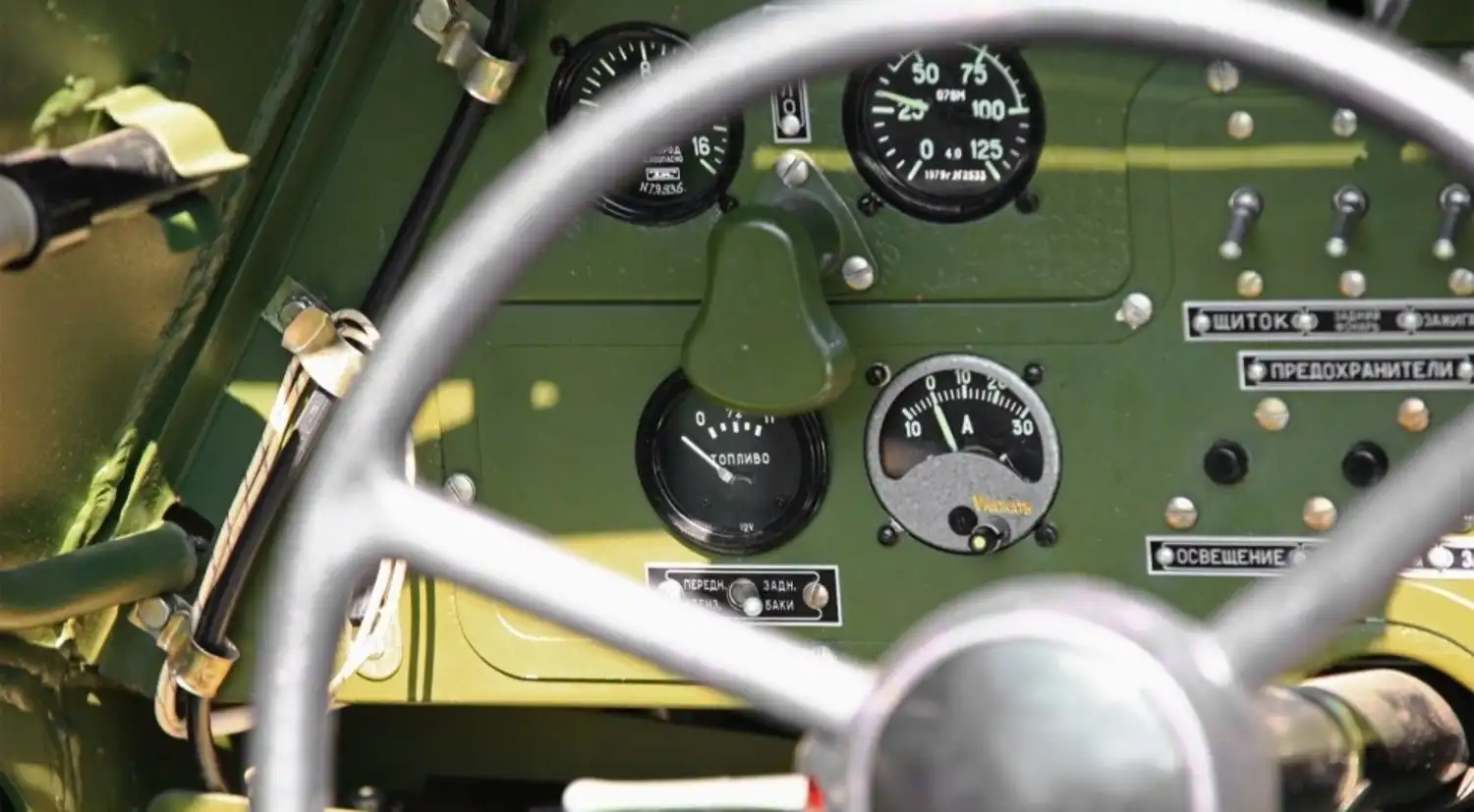 При первом взгляде на переднюю консоль (если эту железяку вообще можно сравнить с панелями современных автомобилей) глаза разбегаются – ведь такое количество тумблеров и рычажков наверняка вводило в ступор солдат- срочников.