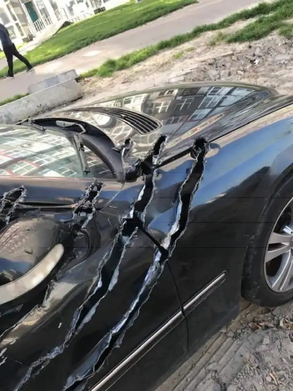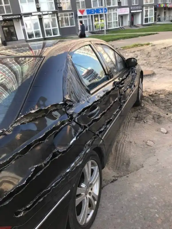 Автор этих снимков увидел в соседнем дворе припаркованный автомобиль, с которым произошло что-то очень странное. Глядя на фото в продолжении поста, в голову приходит несколько версий произошедшего. А у вас есть идеи, что с ним вообще могло случиться?