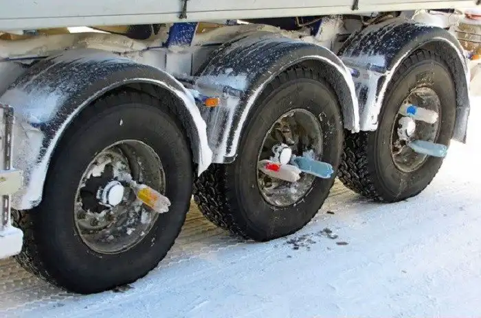Зачем дальнобойщики вставляют пустые бутылки в колеса прицепа фуры