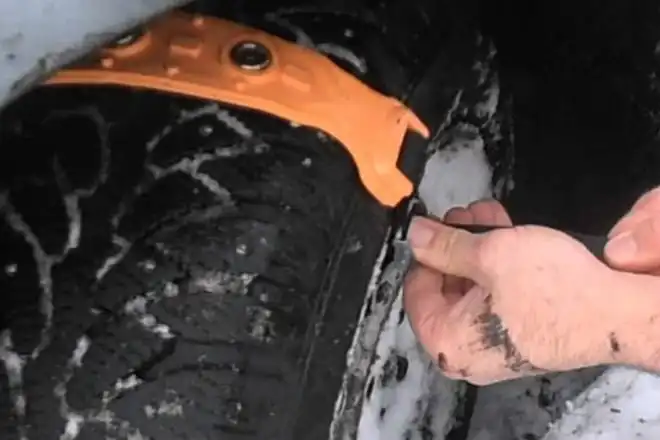 В первую очередь нужно поставить колеса автомобиля прямо. Если есть возможность, то еще и немного их приспустить: так сцепление с дорогой будет лучше.