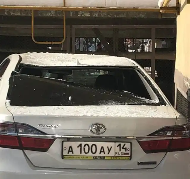 Глядя на такие фотографии понимаешь, что на этот раз управляющая компания точно "попала". Почему, спросите вы? Да все дело в том, что снежная "лавина" сошла с крыши здания на служебный автомобиль мэра Якутска Сарданы Авксентьевой, которая сейчас находится в отпуске. На машине оказалась погнутой крыша, а также разбито заднее стекло. В администрации уже пообещали выписать предписание управляющей компании, обслуживающей дом, а машину собираются восстановить по КАСКО.