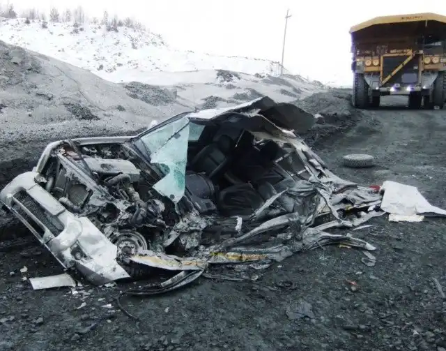 В карьере Южный "Карельского окатыша" произошла авария, во время которой автосамосвал в прямом смысле слова раздавил автомобиль Ford Ranger. К счастью, несмотря на то, что у пикапа практически не осталось водительской стороны, по которой проехал карьерный самосвал Caterpillar, водитель не только выжил, но еще и не получил никаких увечий.