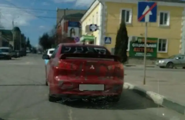 Вот такой автомобиль Mitsubishi Lancer был замечен на улицах Липецка, который, вероятно, стал объектом мести обманутой жены. Как вы уже могли догадаться, надписи на нем сделаны обычным баллончиком с краской, поэтому избавиться от них будет не так уж и просто.