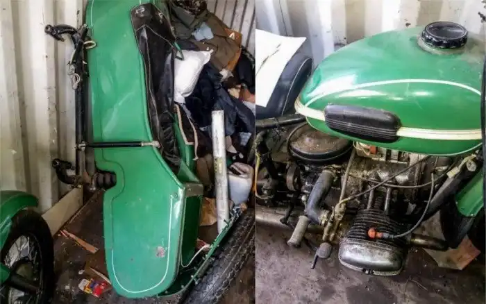 Мотоцикл "Урал" с коляской, простоявший 20 лет в контейнере