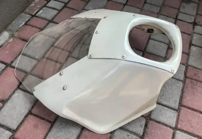Данный экземпляр также укомплектован фирменным ветровым щитков из металла и оргстекла. Это заводской аксессуар, за который при покупке пришлось доплатить 460 рублей и 80 копеек.