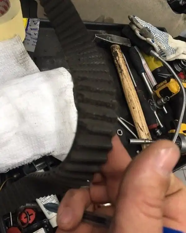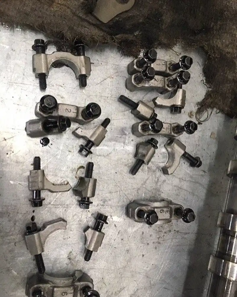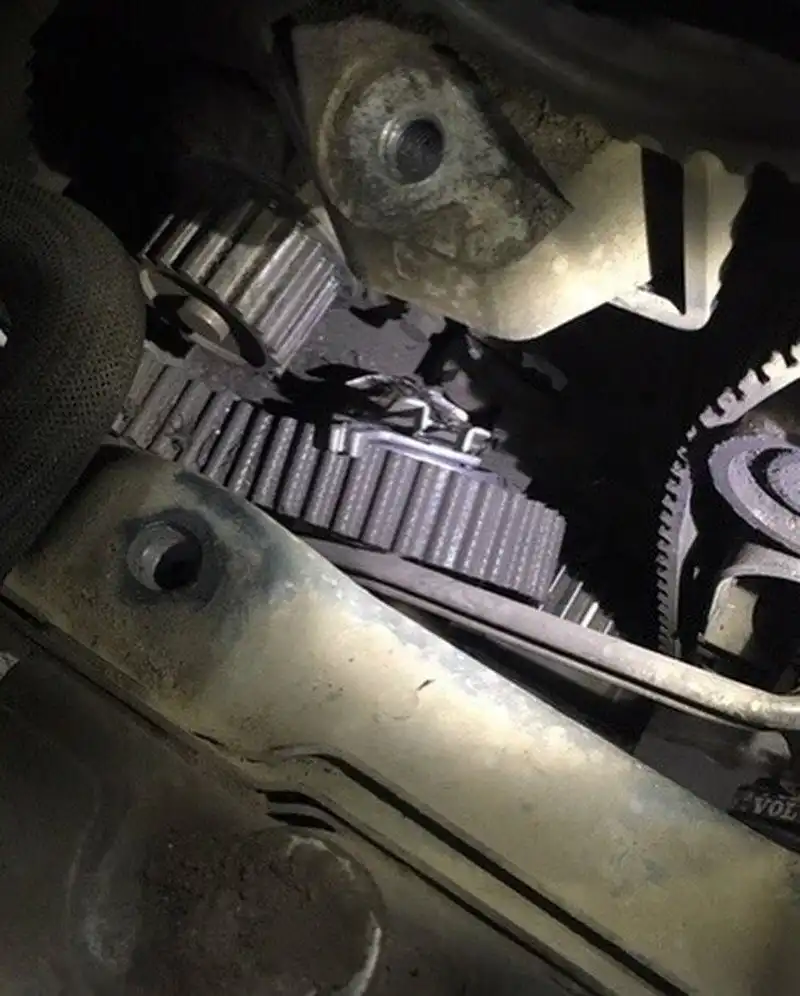 Вот эту невзрачную серую ветошь механики СТО забыли на генераторе Volvo XC60. Дальше ее через ремень навесного, затащило в ГРМ. Ремень не порвало, а вот ролик натяжителя вырвало вместе с куском блока. 3 гидрокомпенсатора вырвало со своих мест вместе с кусочками головы. Дальше на экспертизе разбирать не стали, ибо и так понятно, что мотор на выброс. Горе-ремонтникам предстоит оплатить покупку и монтаж нового двигателя.