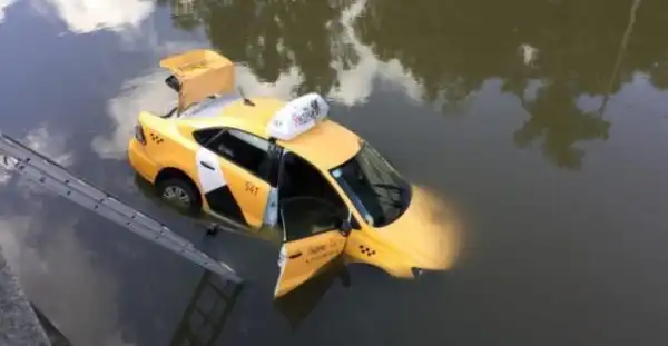 В Москве водитель такси не справился с управлением, протаранил ограждение набережной и угодил в Яузу. Никто не пострадал, чего не скажешь об автомобиле. Думаю, девушка не оставила "на чай" водителю, хоть и поездка была очень запоминающаяся.