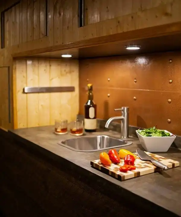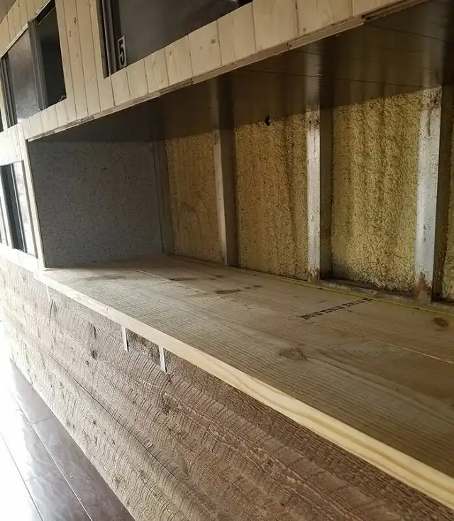 В интерьере использовано несколько видов дерева. По мнению Майкла, он сделал все так, как и планировал. Если бы не основная работа, то на переделку потребовалось бы меньше месяца.