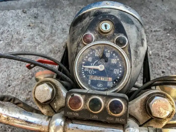 Как раз в конце 1977 года, японский карбюратор уступил место советскому К-62М, инженеры также снизили степень сжатия в угоду ресурсу и стойкости к детонации: мощность мотора снизилась до 28 л.с. Перед вами — именно такая переходная модификация: уже с отечественным карбюратором, но с японскими поворотниками и пультами.