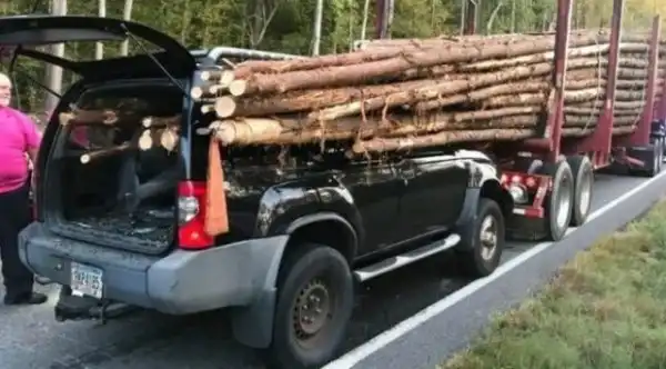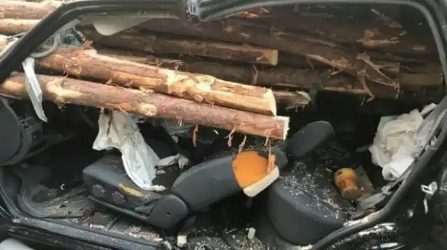 Сообщается, что всё произошло в Джорджии (США) — водитель внедорожника отвлёкся от дороги, поднимая с пола какой-то мусор, после чего въехал в грузовик, который резко затормозил. По иронии судьбы, перевозил большегруз брёвна — всё как в фильме «Пункт назначения». И выглядит так же — порядка 30 брёвен вошли в джип. Однако интересен финал истории.