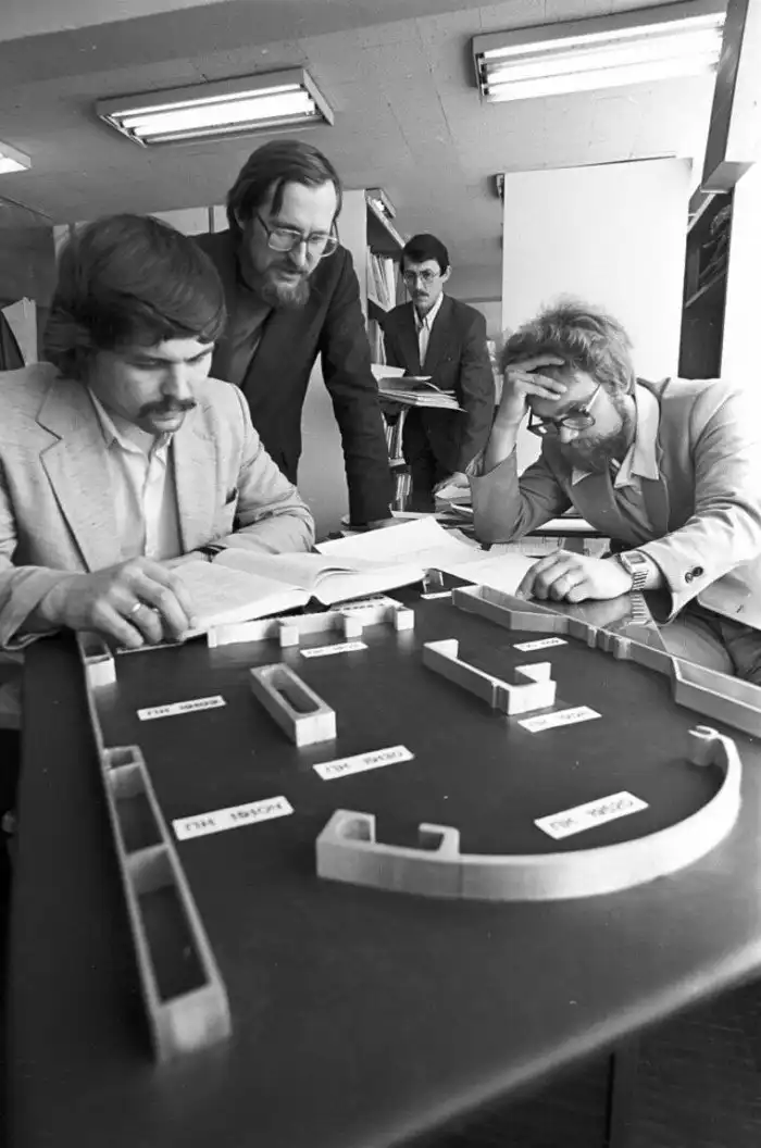 Рядом с ним в очках – Лапшин Леонид Михайлович, который работал на КАМАЗе в должности начальника конструкторского отдела компоновок Управления главного конструктора, затем с 1986 года главным конструктором по автомобилям НТЦ.