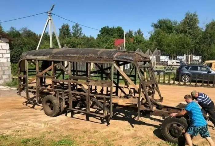 Текст оригинального объявления: "Продается автобус ЗИС 127. Сейчас он в работе - сделан мотор, ходовая, через 3 месяца закончат кузов. Цена 240к евро . Сделанный до конца (салон, хром, покраска) 450к евро."