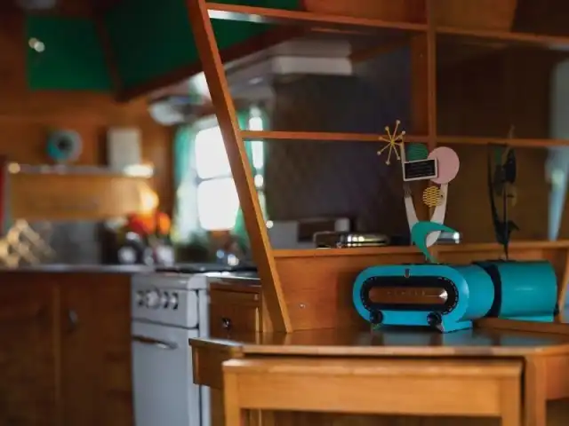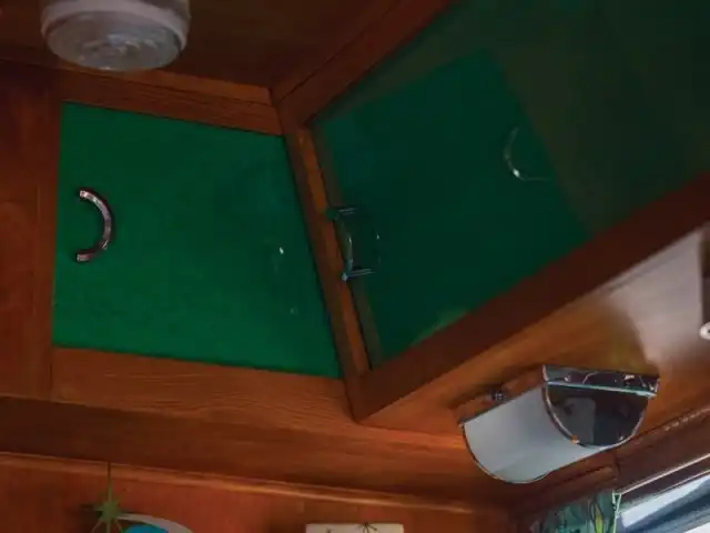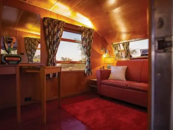 Интерьер полностью пропитан духом Америки 1950-х - тёмно-коричневые, ненасыщенные красные, ярко-синие и зеленые цвета, которые сочетаются с небольшим количеством полированного металла. Также в кемпере есть огромное множество ретро-вещей, таких как часы Jefferson 500 и радио Zenith.
