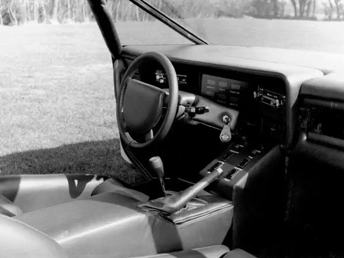 Однако коэффициент аэродинамического сопротивления купе составлял вполне достойные 0,34. Суперкар снабдили ставшими уже тогда привычными дверями в стиле «крыло чайки» (с приводами от капота тогдашнего V8 Volante) и кое-какими новомодными фишечками из сферы все той же аэродинамики – например, небольшими лопастями на колесных дисках. Они должны были затягивать воздух внутрь колес ради более эффективного охлаждения тормозов. Позже аналогичное решение применили на Porsche 956. А еще у него были сразу пять головных фар «скрытого ношения» и салон от вышеупомянутой «Лагонды» со всеми сопутствующими наворотами (хоть и двухместный и леворульный).