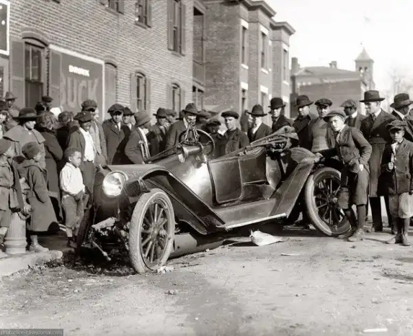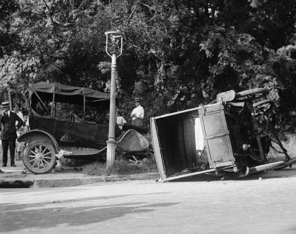 Автомобильные аварии появились вместе с машинами. И до наших дней сохранились фотографии ДТП, сделанные в годы, когда автомобилей было довольно мало и они не развивали больших скоростей. Даже жалко смотреть на эти раритетные машины, ставшие грудами металлолома.