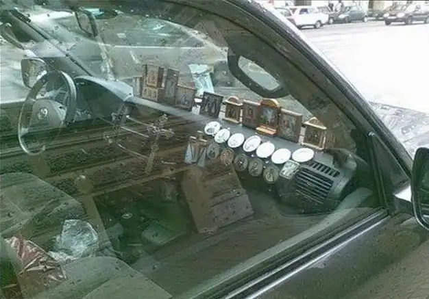 Безопасность прежде всего! Поэтому среди водителей общественного транспорта так много верующих. Атеистов среди них нет. И в доказательство собрали целую подборку с автомобильными оберегами. Интересно, от штрафов спасает?