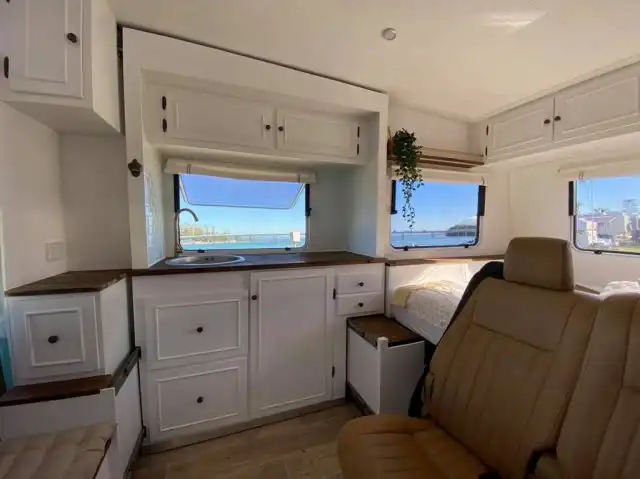 Как пишет Daily Mail Australia, работа у него заняла 10 месяцев, но затраченное время стоило того. Теперь восстановленный фургон выглядит просто отлично. Он оборудован для комфортного размещения четырех человек. В нем есть электронная автоматизированная выдвижная кухня, 2,5-литровый двигатель от Subaru Forester, пятиступенчатая коробка передач Subaru-gears, холодильник, две двуспальные кровати и площадка для барбекю с двумя пивными кранами.