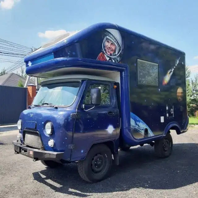 УАЗ сделал из «Буханки» кемпер с портретом Гагарина. Машину назвали «Мир вам!»