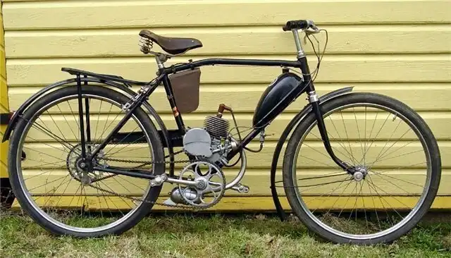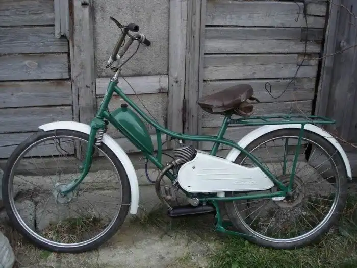 В СССР мопеды появились после ВОВ. Сначала пытались приладить мотор к уже существующим велосипедам. Пытались сделать привод от мотора к переднему колесу, поместив двигатель под руль, потом разместить на заднем багажнике. Также был вариант размещения двигателя под педальной кареткой, а вращение передавалось прижимом резинового барабана к шине заднего колеса.