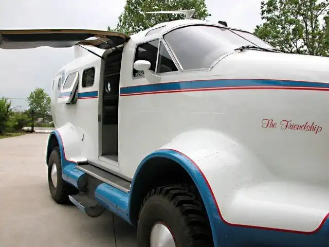 Этот необычный внедорожник, если верить информации из Интернета, использовали для перевозки пассажиров в одном из аэропортов Лас-Вегаса. И выглядит он действительно необычно. Дело в том, что старый Jeep Wagoneer 1979 года соединили с самолетом Beechcraft D-18. И получилось "это". Разместиться в машине может десяток человек - вполне с комфортом. Интерьер тоже порадует глаз, поскольку элементы использованного для строительства самолета остались. В общем - посмотрите сами, выглядит действительно массивно и эффектно.