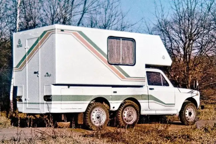 В конце 80-х тольяттинцы явили на свет весьма оригинальный трехосный автокемпер ВАЗ-2121 Auviga. Центральной идеей этого кемпера являлась модульная конструкция. К базовому шасси ВАЗ-2121 крепилась одноосная жилая надстройка. При необходимости данную надстройку можно было легко демонтировать и закрепить на специальных опорах.