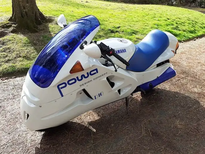 Это Yamaha Moko Powa D10, который иногда называют Powa D10. Мотоцикл основан на шасси Yamaha FZ750 и получил индивидуальный аэродинамический комплект, разработанный Гансом Вальтером.