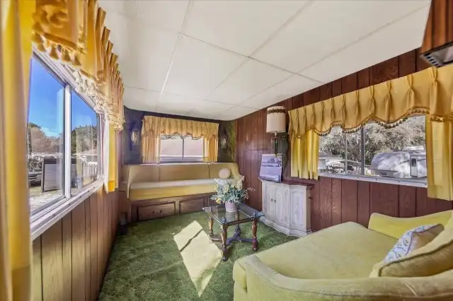 Мощь и сила чувствуется в этом автомобиле. Его построили в 1974 году фирмой Edler&Company из Иллинойса. В мире есть еще две подобных "игрушки": у второго отсек для перевозки лошадей, а у третьего — для лодки. Внутри все, будто застыло в 70-х: отделка из дерева, винтажная мебель, ретро-обои и зеленый ковролин на полу. Есть двуспальная кровать, душ, гостиная, кухня, а также большая обеденная зона с угловым диваном. Стоимость такого авто - 120 000 долларов (около 8,5 млн рублей).