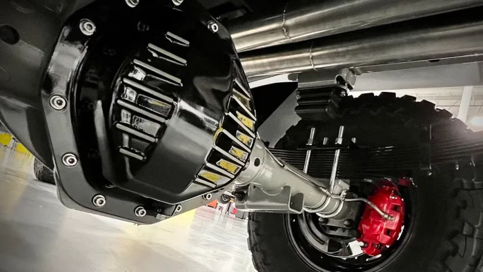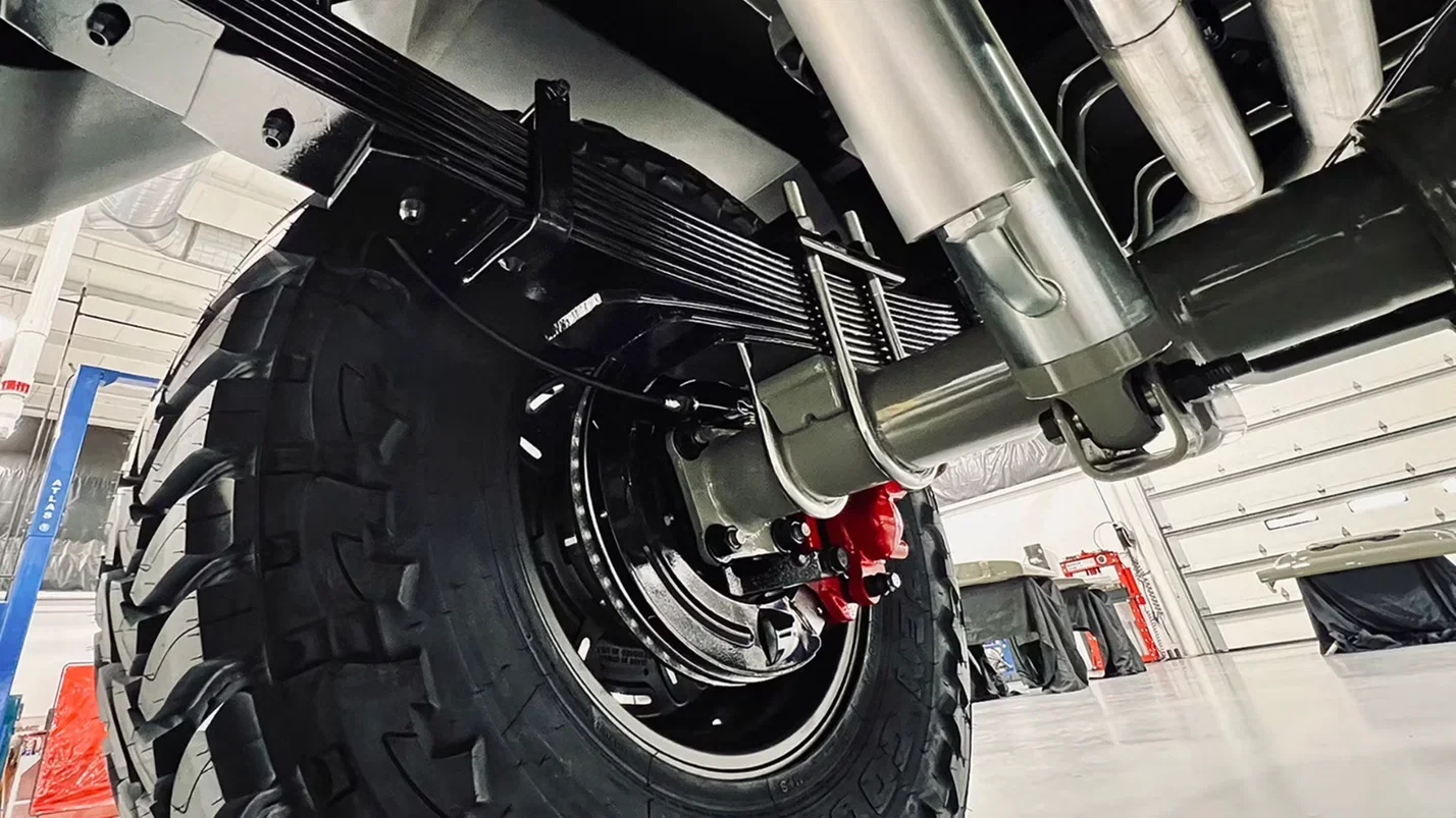 Подвеска лифтована на 83 миллиметра спереди и на 51 миллиметр сзади. Амортизаторы King с выносными резервуарами обеспечивают ход 216 миллиметров спереди и 279 сзади. За кабиной с двумя рядами сидений установили грузовую платформу с креплением для запаски.