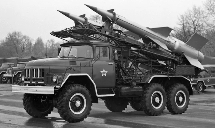 Транспортно-заряжающая машина на базе ЗиЛ-131. Фото сделано перед парадом на Красной площади.