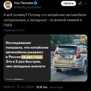Эксперты заявили, что китайские авто ржавеют в труху за пару лет из-за российского климата. Оказывается, машины приезжают в страну без антикоррозийной обработки: самыми уязвимыми к ржавчине называют JAC, LiXiang, Lifan, Jetour, Dongfeng — они могут проржаветь через год-полтора. Чуть большую устойчивость могут показать Haval, Geely, FAW, OMODA, Chery — от 4 до 5 лет Основные причины — противогололедная обработка и суровый климат в России.