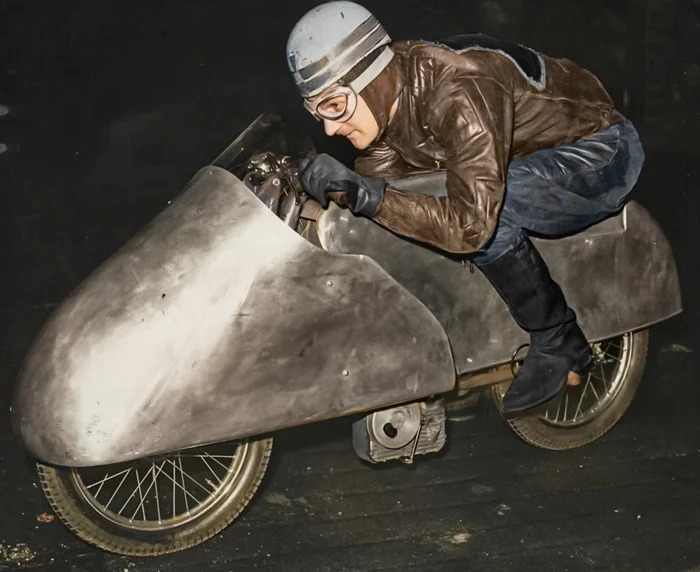 Арнольд Джонс на гоночном скутере. Англия, 1955 год.