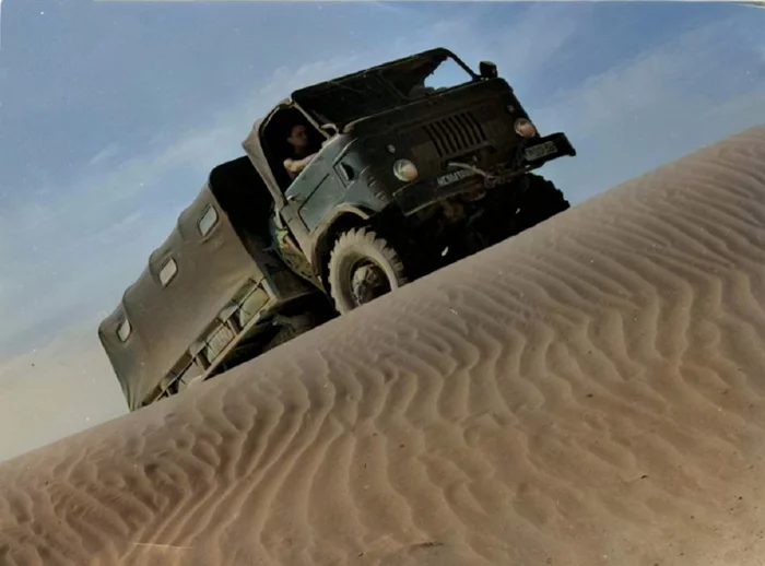 Опытный образец грузового автомобиля ГАЗ-66 во время испытаний в каракумской пустыне, 1962-1963-й год.